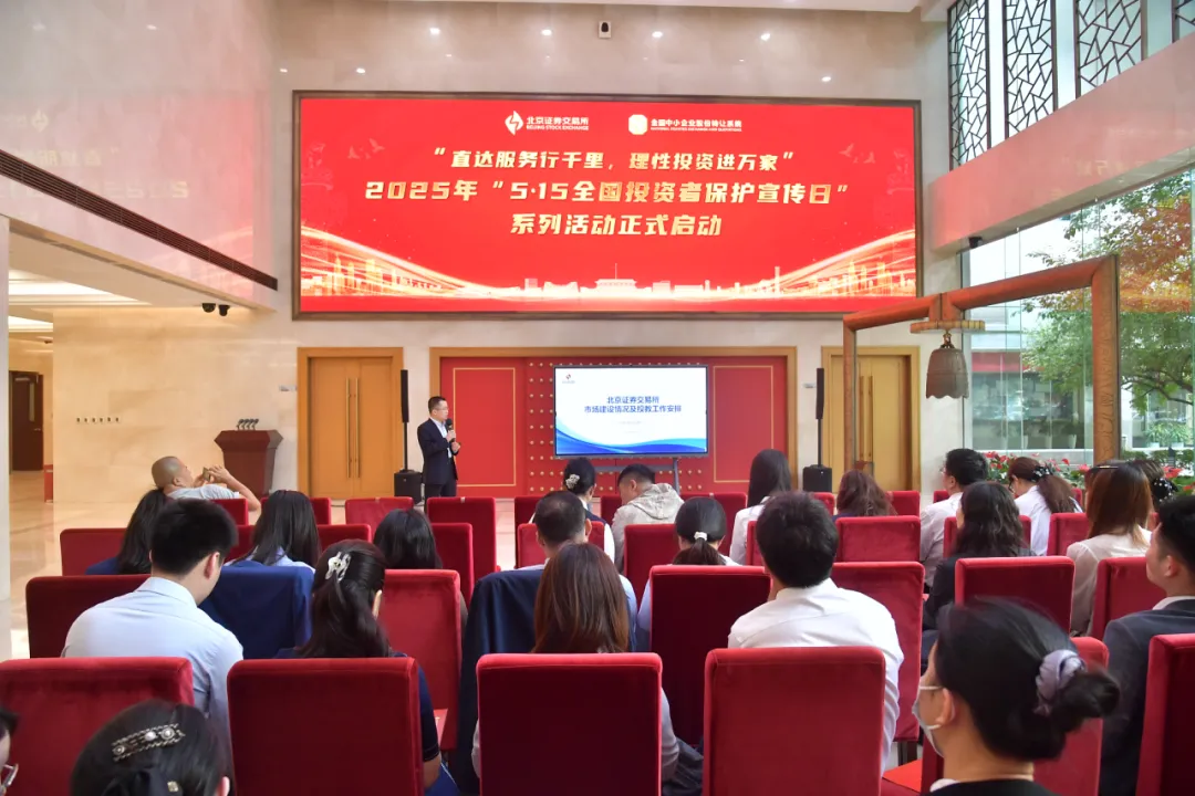 为深入贯彻党的二十届三中全会精神,全面落实中央经济工作会议、全国金融系统工作会议部署,深入贯彻落实新“国九条”关于加强投资者保护的工作安排,根据证监会有关要求,在“5·15全国投资者保护宣传日”活动期间,北交所、全国股转公司联合北京证监局、中国证券业协会、中信建投证券、中信证券、华福证券、信达证券等会员单位共同开展“直达服务行千里 理性投资进万家”——2025年投资者服务北京站活动,通过主题宣讲、现场参访、座谈交流等形式,持续倡导理性投资理念。