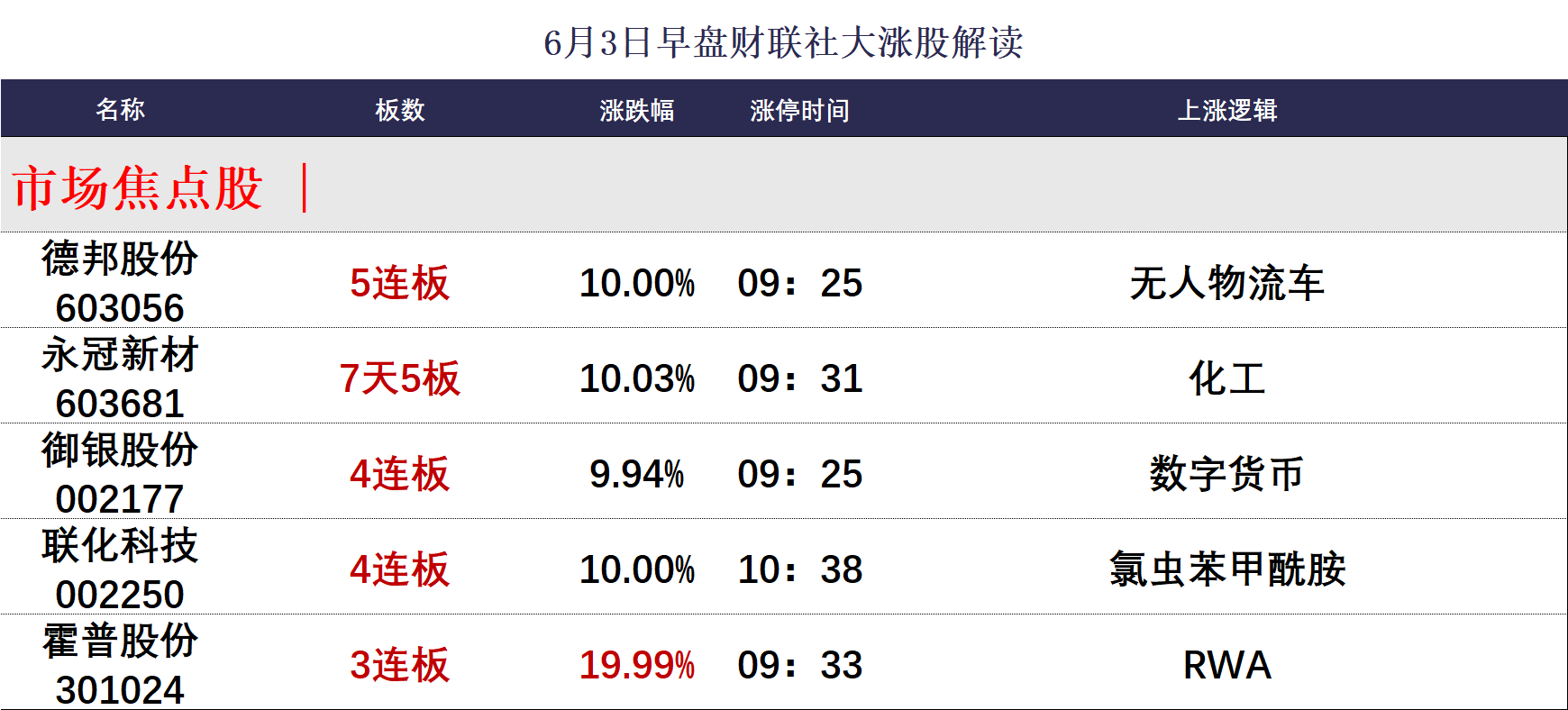 财联社6月3日电,今日午盘全市场共55股涨停,连板股总数14只,27股封板未遂,封板率为67%(不含ST股、退市股)。焦点股方面,德邦股份晋级5连板,成为市场高度板。数字货币概念股反复活跃,御银股份4连板,霍普股份20CM3连板。