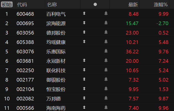 财联社6月4日电,市场焦点股百利电气(12天7板)高开9.99%,并购重组的滨海能源(11天7板)低开2.70%,无人车辆概念股德邦股份(5板)高开0.52%,新消费概念股均瑶健康(6天5板)高开5.48%、乐惠国际(6天4板)高开9.76%,化工股永冠新材(7天5板)高开7.24%、联化科技(4板)高开5.24%,数字货币概念股御银股份(4板)高开5.02%、恒宝股份(3板)高开1.53%,创新药概念股万邦德(2板)高开9.87%、海南海药(2板)竞价涨停。