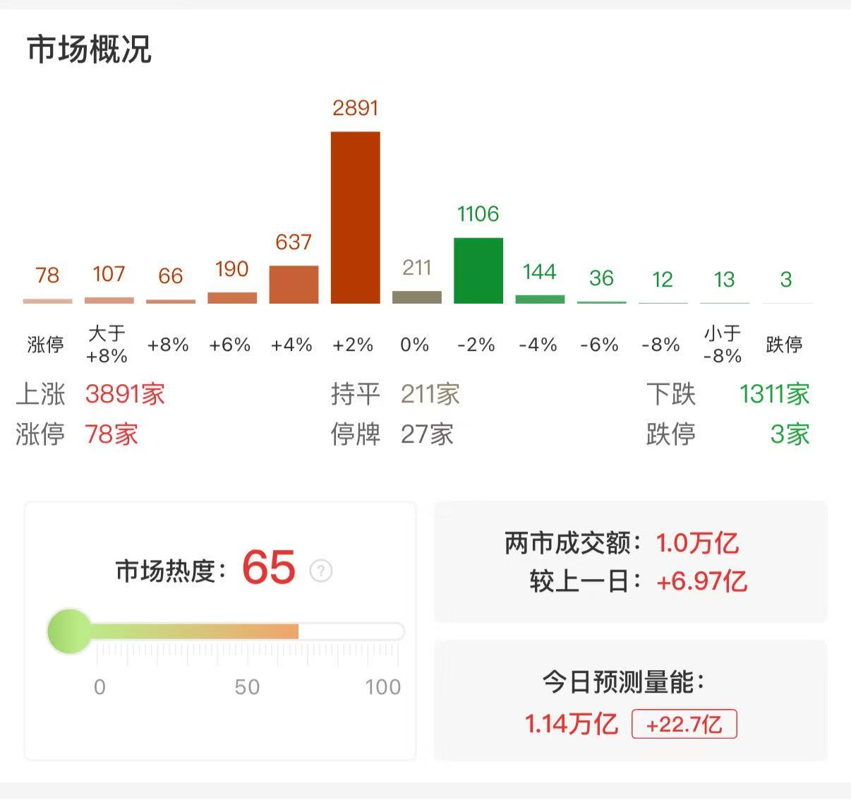财联社6月4日电,据财联社盯盘数据显示,沪深两市成交额连续第5个交易日突破1万亿,较昨日此时放量近7亿元,预计全天成交金额约1.14万亿。