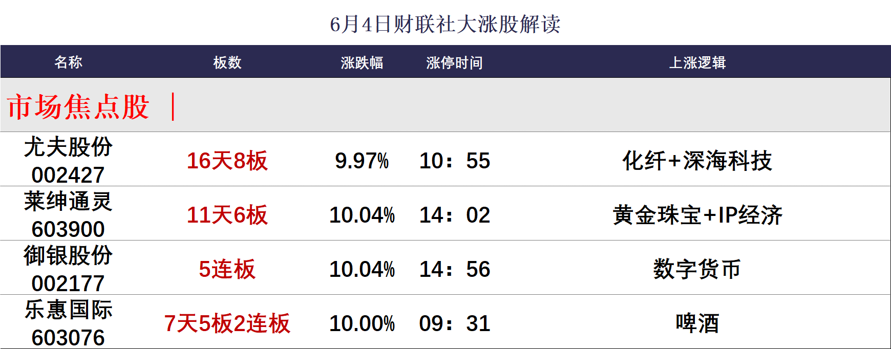 6月4日涨停分析