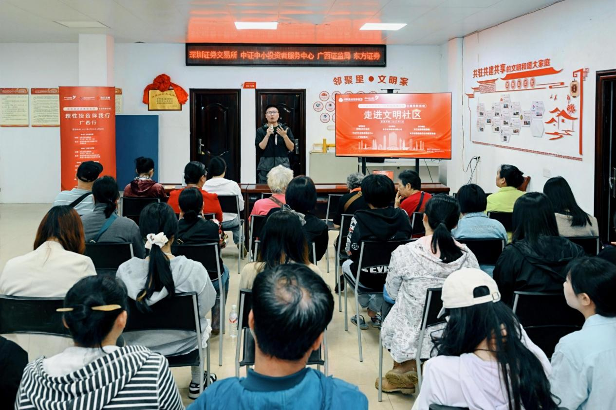为深入贯彻落实资本市场新“国九条”及中央金融办关于防范打击非法金融活动、治理金融领域非法中介的决策部署,东方证券联合深圳证券交易所于5月29日上午在桂林市象山区文明路文明社区举办了“理性投资伴我行”专项公益投教活动。本次活动吸引了40余名投资者参与,通过知识宣讲、案例剖析、互动问答等形式,切实提升中小投资者的风险防范意识和合法权益保护能力。