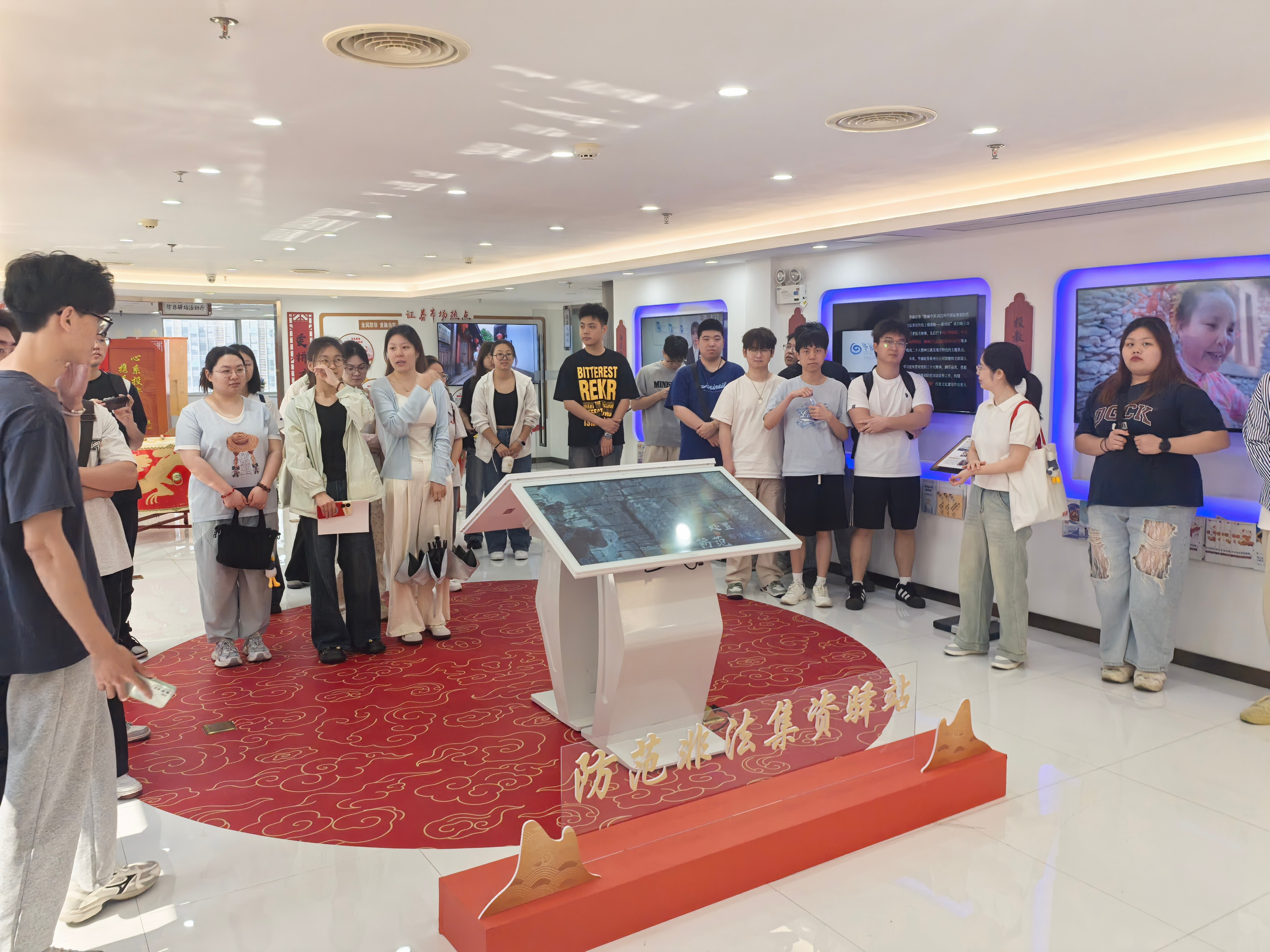 活动伊始,工作人员首先带同学生们参观三大主题展厅,并详细介绍各个展厅的亮点及特色。参观过程中,同学们认真聆听,积极互动。在原创作品展示区,同学们认真观看基地原创的投教视频,在轻松愉悦的氛围中学习金融知识,提升风险防范意识。