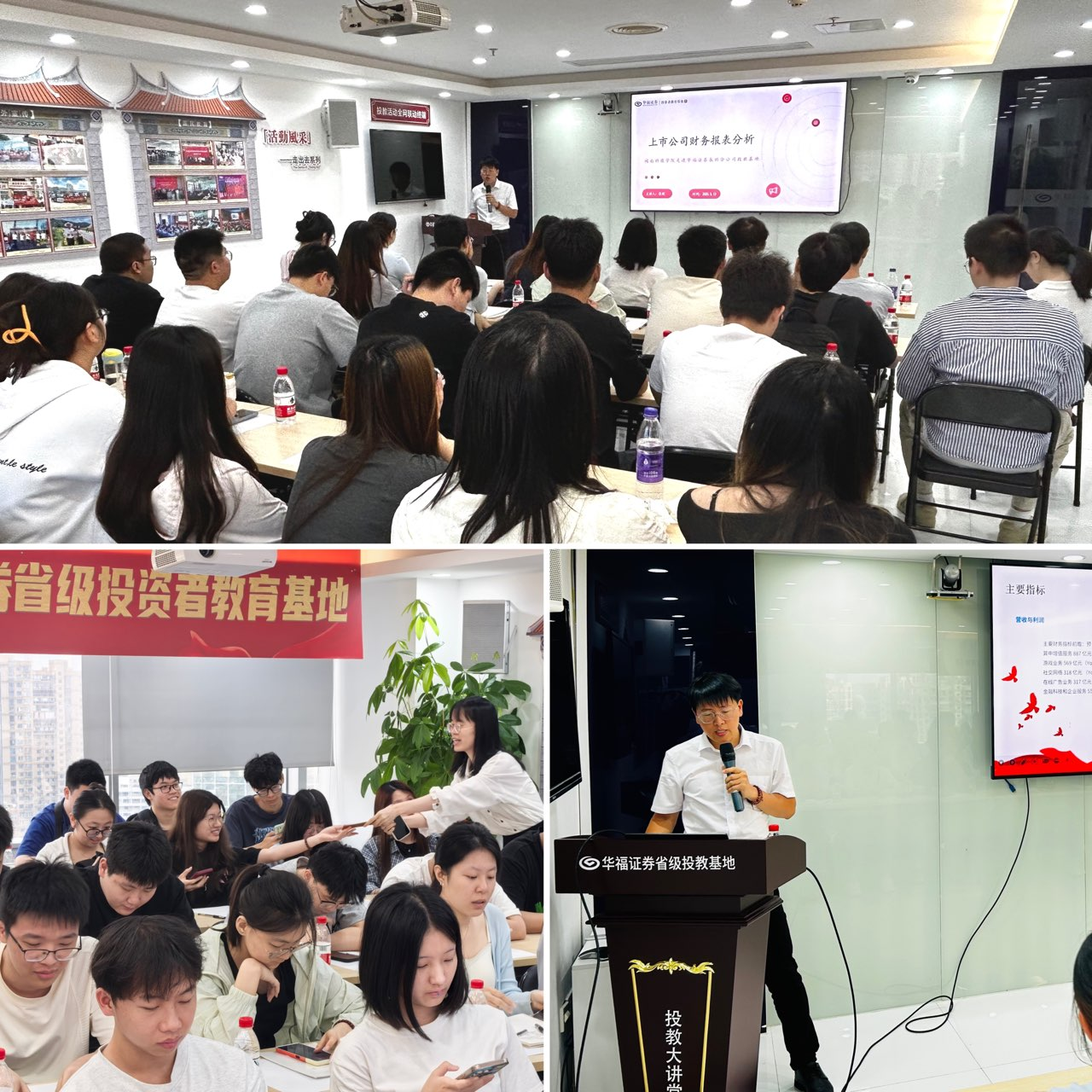 随后,华福证券泉州分公司财福中心张健老师以《上市公司财务报表分析》为主题,结合具体的案例分析,深入浅出地讲解财务报表的核心逻辑。他重点剖析了虚增收入、关联交易等常见财务舞弊手法,并演示如何通过现金流与利润的匹配度识别企业真实经营状况。张健老师强调,财报不仅是数字游戏,更是企业经营的“体检报告”。互动环节中,同学们踊跃提问,与老师一起探讨如何将理论应用于实践当中。
