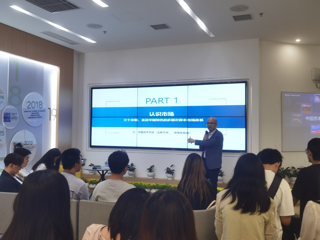 讲座环节,两位优秀校友嘉宾为我们带来了干货满满的投资者教育主题分享。首先登场的是生物与国际经济双学士、现任华泰证券涨乐首席投资顾问的戎鑫先生,他以深厚的专业知识,为我们梳理了中国证券市场发展历程。从沪深证券交易所成立,到北京证券交易所设立,他用详实的数据与鲜活的案例,清晰勾勒出沪深京三市的发展脉络与市场概况。