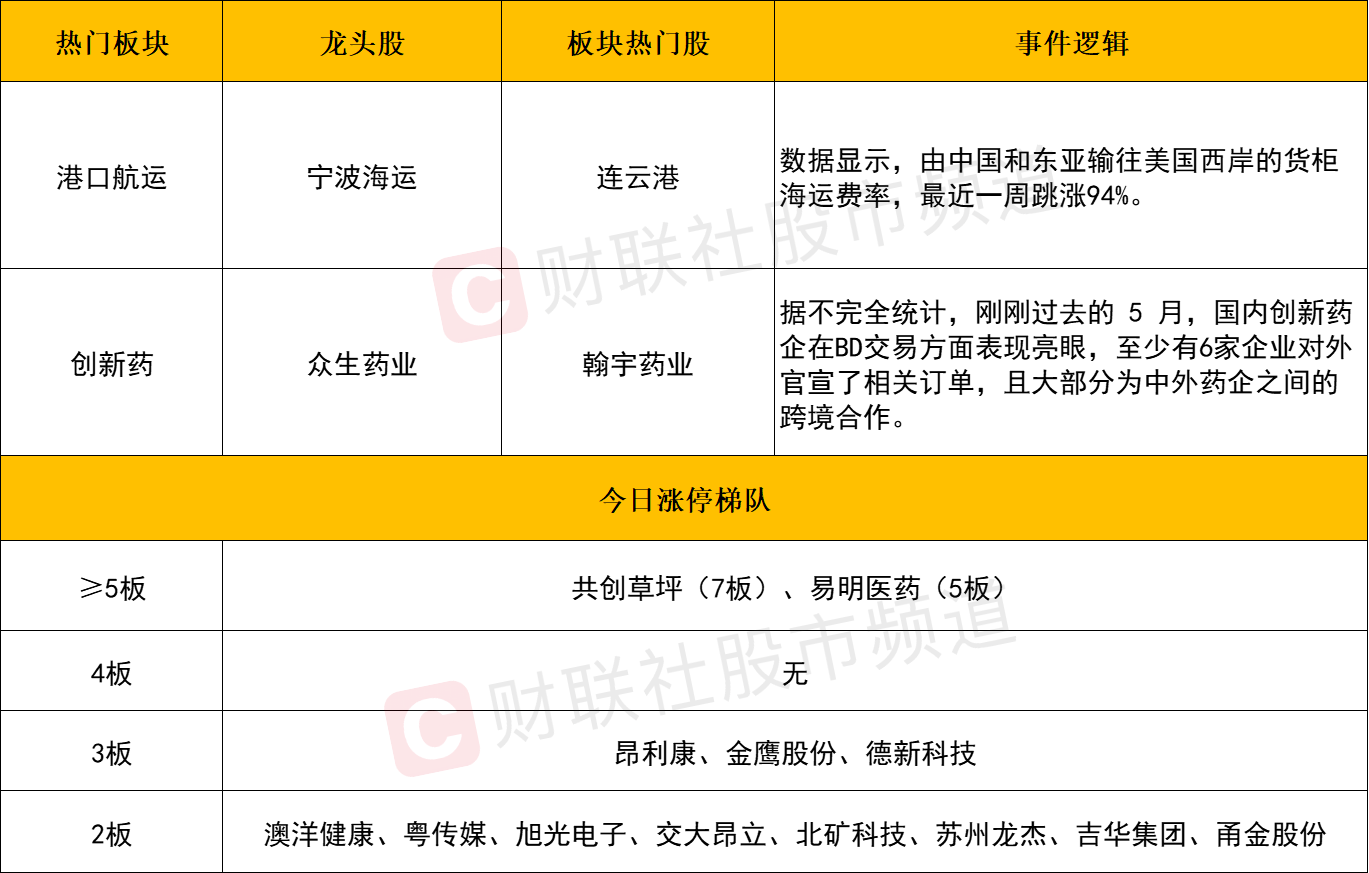 虽然今日市场整体赚钱效应不佳,但连板股方向还是获得了资金青睐。昨日2板以上的个股除了长青股份收跌以外,其余悉数上涨。共创草坪将连板高度拓至7板,易明医药也成功晋级5板。虽然指数陷入调整,但个股的抱团炒作仍在延续。但需要注意的是,随着短线避险情绪的升温,尾盘阶段出现部分资金抢跑之情形,创新药核心标的众生药业开板,未能封住涨停,而联化科技遭遇一定程度的跳水。明日重点关注上述人气高标能否延续强势,一旦出现明显资金负反馈或将拖累相关热点题材分歧调整。
