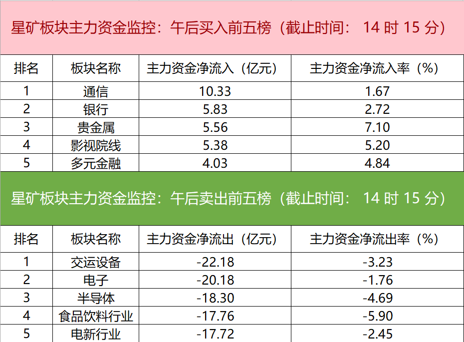 财联社6月12日电,财联社星矿数据显示,今日主力资金净流入通信、银行、贵金属等板块,净流出交运设备、电子、半导体等板块,其中交运设备板块净流出超22亿元。个股方面,融发核电涨停,主力资金净买入8.68亿元位居首位,紫金矿业、东方财富、沃尔核材主力资金净流入居前;比亚迪遭净卖出超5亿元位居首位,姚记科技、贵州茅台、五粮液主力资金净流出额居前。