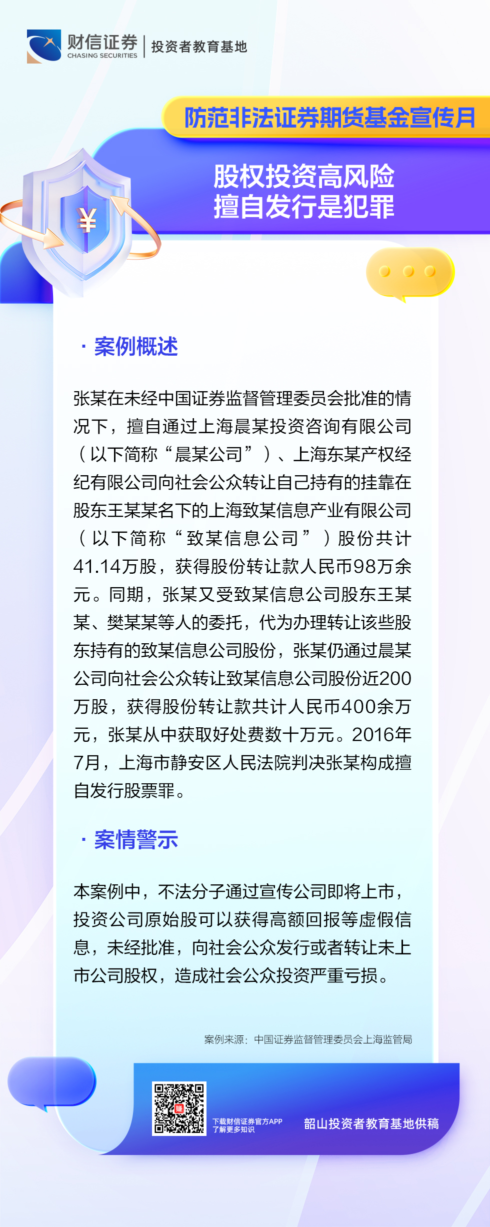 防范非法证券期货基金宣传月丨股权投资高风险 擅自发行是犯罪