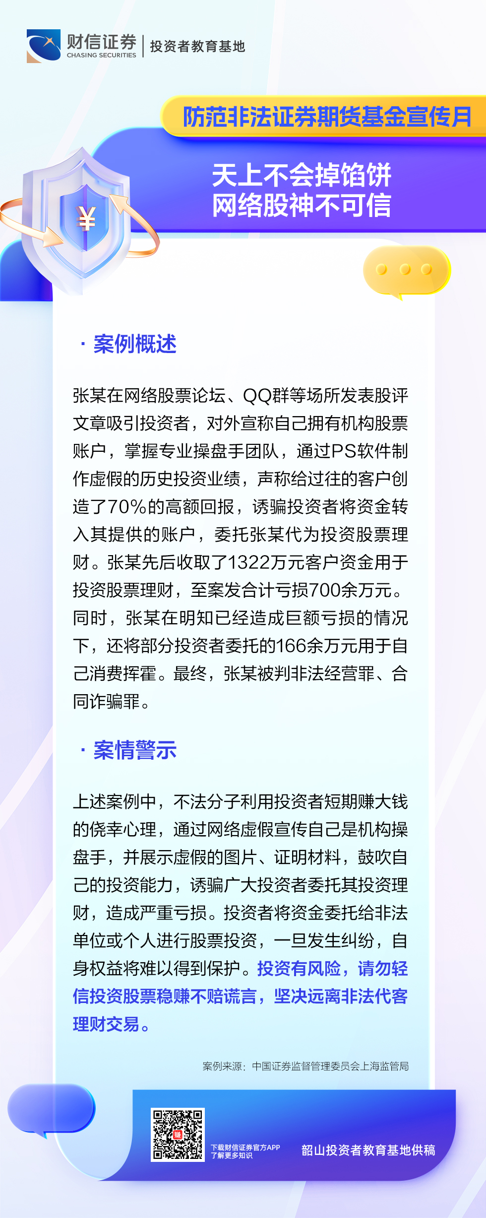 防范非法证券期货基金宣传月丨天上不会掉馅饼 网络股神不可信