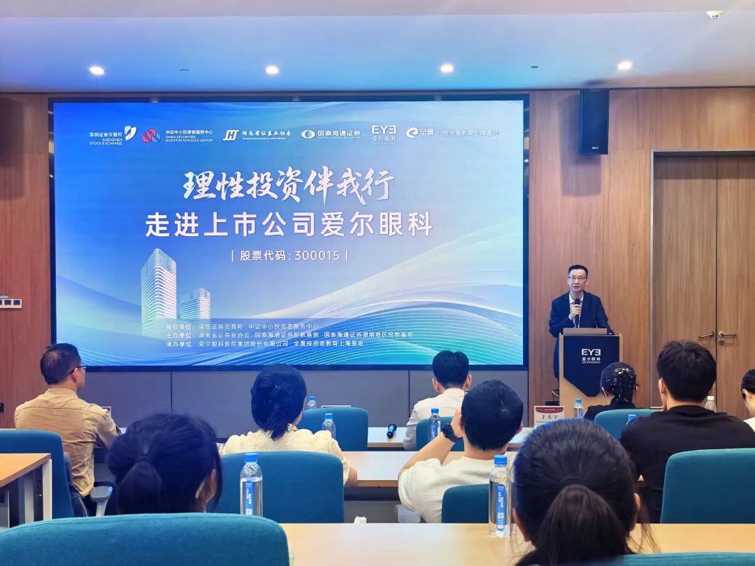 在深入贯彻落实“金融五篇大文章”及“国九条”政策要求,全力推动资本市场高质量发展的时代背景下,2025年6月17日,由深圳证券交易所、中证中小投资者服务中心指导,湖南省证券业协会(以下简称“协会”)牵头,联合国泰海通证券、爱尔眼科和全景网主办的“理性投资伴我行—走进上市公司爱尔眼科”活动圆满举行。此次活动是协会积极响应国家金融政策导向,强化投资者保护、服务实体经济、助力资本市场稳健发展的生动实践。