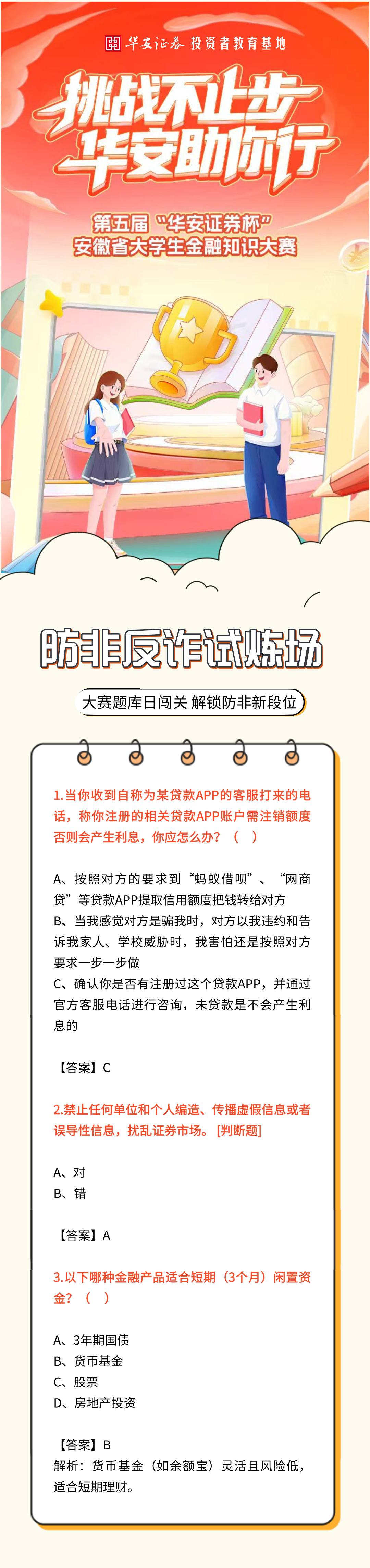 【防非宣传月】“华安证券杯”安徽省大学生金融知识大赛系列问答:哪种金融产品适合短期(3个月)闲置资金?