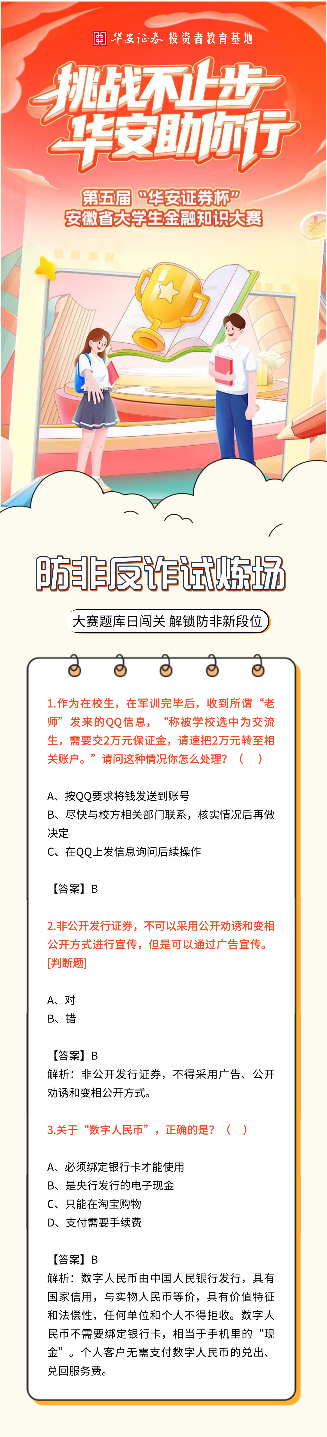 【防非宣传月】“华安证券杯”安徽省大学生金融知识大赛系列问答:关于“数字人民币”,描述正确的是?