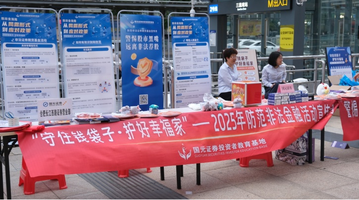 为积极响应防范非法集资宣传号召,提升社会公众风险防范意识,6月18日,国元证券投资者教育基地和公司合规法务部联合中共合肥市蜀山区委员会、合肥市蜀山区人民政府、合肥市蜀山区财政局、合肥市公安局蜀山分局等单位,在之心城广场成功举办“守住钱袋子・护好幸福家”防范非法集资主题投教活动。此次活动得到安徽省委金融工作委员会的指导,吸引了众多市民参与,取得了良好的宣传教育效果。