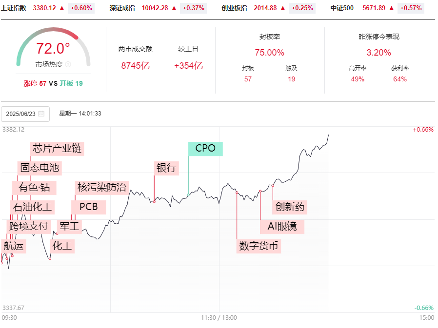 市场午后震荡反弹,三大指数均翻红。全市场上涨个股超4100只,涨停个股数量创近期新高。成交量方面,午后第一个小时两市放量374亿。板块方面,午后资金持续流入稳定币方向。短线方面,情绪再度活跃,昨日连板股全线上涨,5只个股涨停,涨停晋级率超60%。