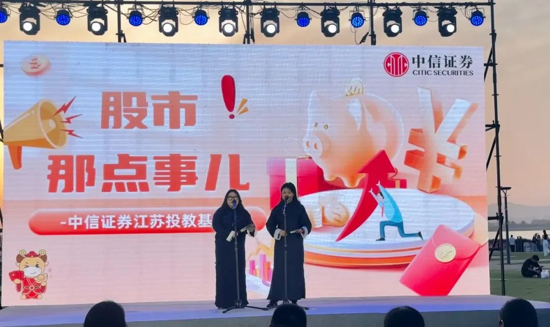 活动伊始,中信证券的同事们以活力四射的歌曲联唱闪亮登场,激情洋溢的歌声瞬间点燃全场气氛,为活动拉开了精彩序幕。紧接着,幽默风趣的相声《股市那点事儿》爆笑上演,演员们用生动诙谐的语言,将股市中的防诈骗知识巧妙融入其中,引得现场观众笑声连连,将活动推向了一个小高潮。
