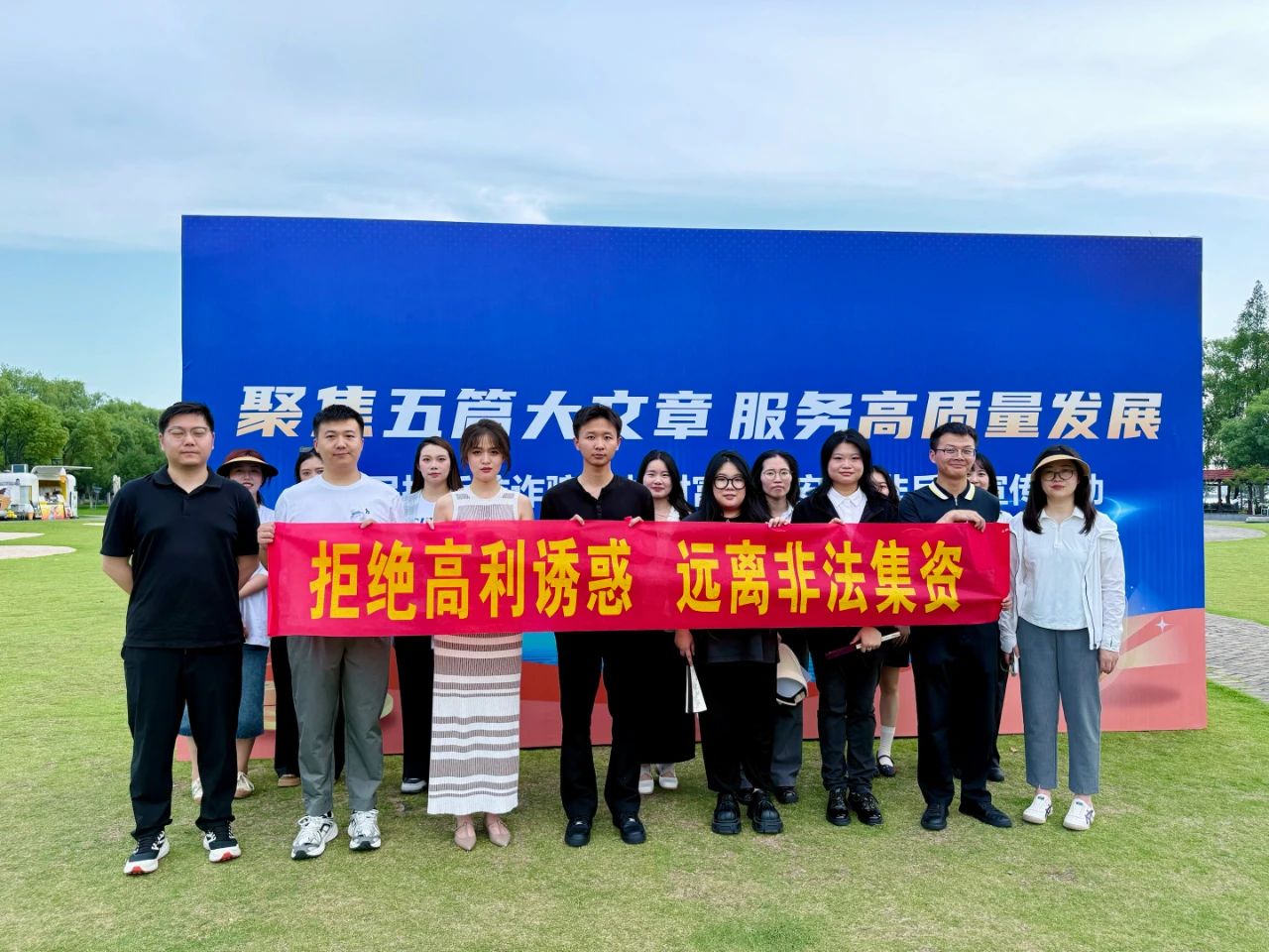 6月17日,聚焦五篇大文章服务高质量发展“全民携手防诈骗 守护财富保平安”防非反诈宣传活动在南京鱼嘴湿地公园灯塔旁举行。本次活动由江苏省证券业协会、财联社联合主办,中信证券江苏投教基地等8家投教基地联合主办,南京市公安局建邺分局协办。中信证券江苏分公司积极响应号召,组织南京区域5家营业部深度参与此次活动。
