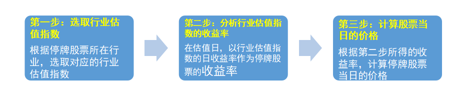 对于停牌股票,使用指数收益法进行估值调整,大致需要经过以下三个步骤:
