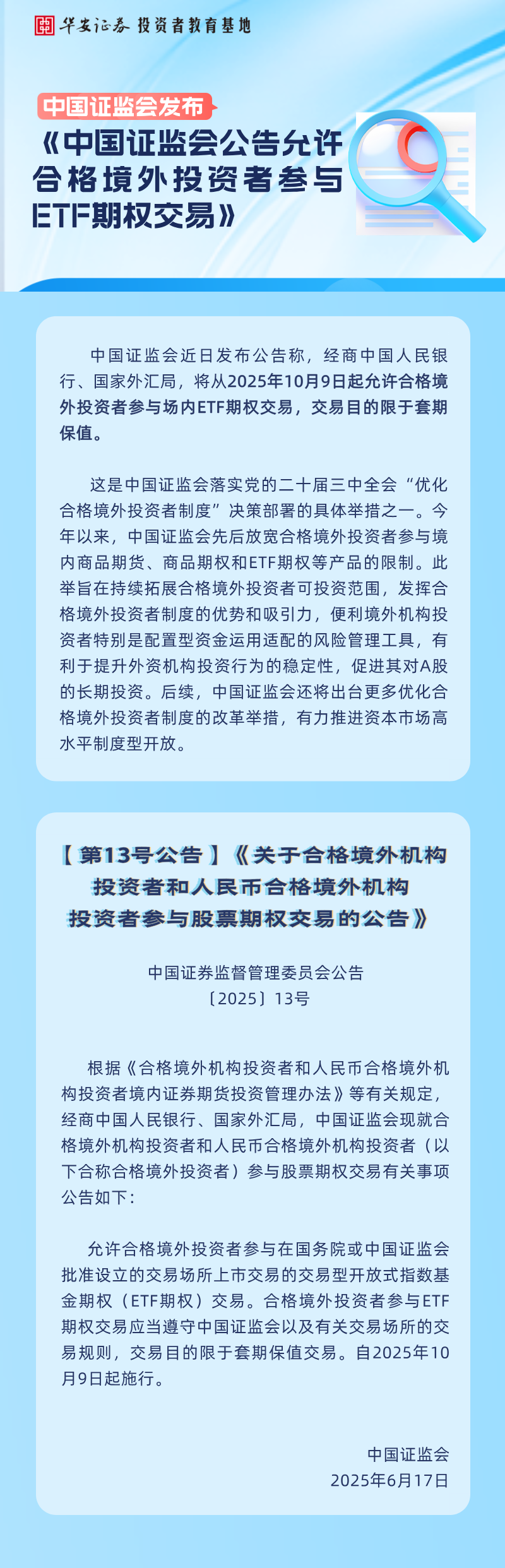 要闻 | 中国证监会发布《中国证监会公告允许合格境外投资者参与ETF期权交易》