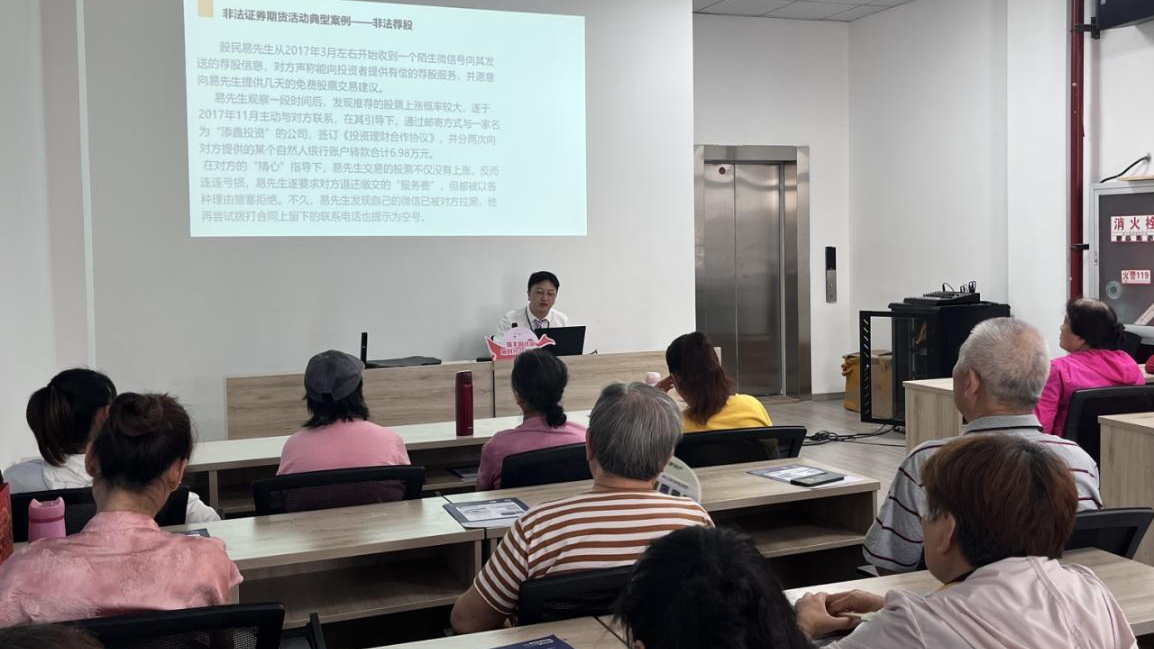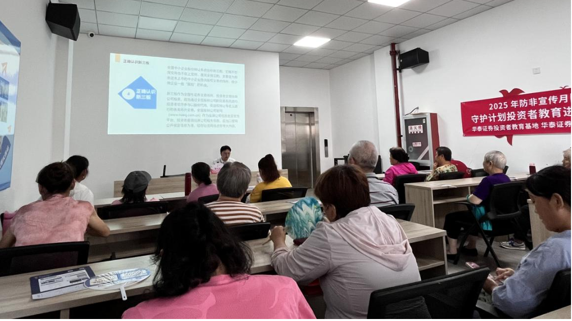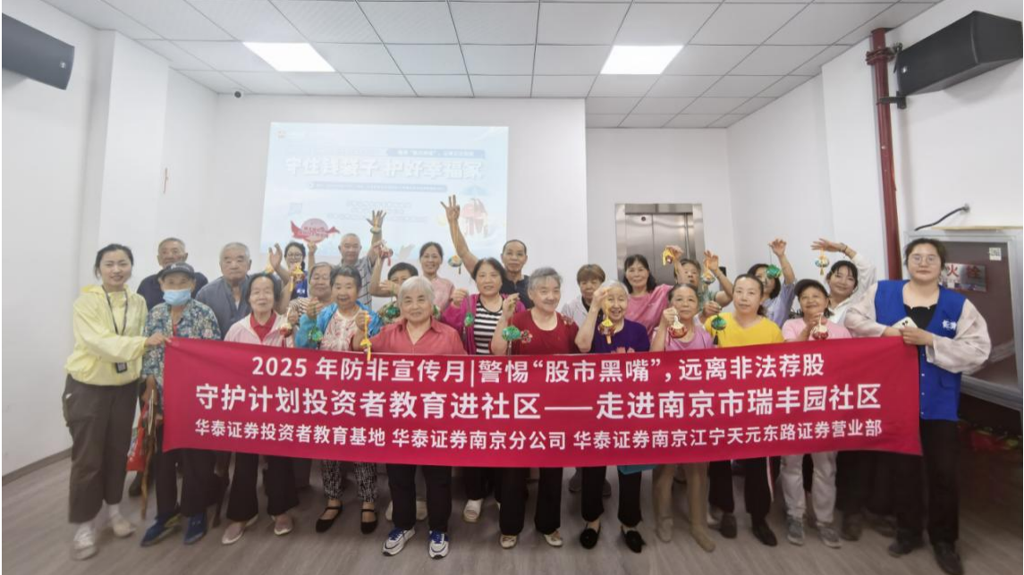 为推动投资者保护服务平等惠及中老年人,提高中老年投资者风险防范意识和自我保护能力,共同守护老百姓的“钱袋子”,华泰证券投教基地联合南京分公司及南京江宁天元东路证券营业部以防非宣传月为契机,于6月17日开展防非教育宣传走进瑞丰园社区专场活动,为社区居民带来了投保防非主题讲座。