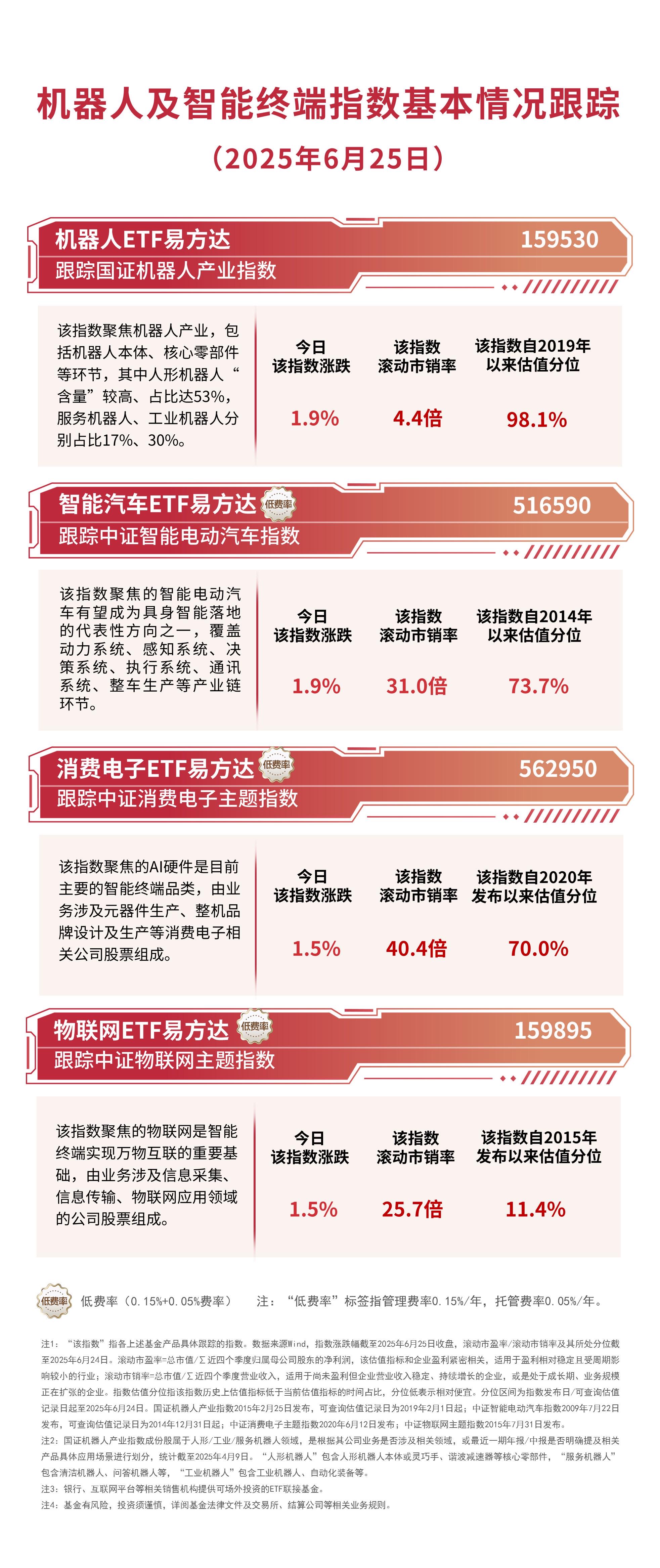 截至收盘,国证机器人产业指数、中证智能电动汽车指数均上涨1.9%,中证消费电子主题指数、中证物联网主题指数均上涨1.5%。