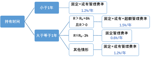当持有时间小于一定期限,收取基础档费率(固定+或有管理费)。