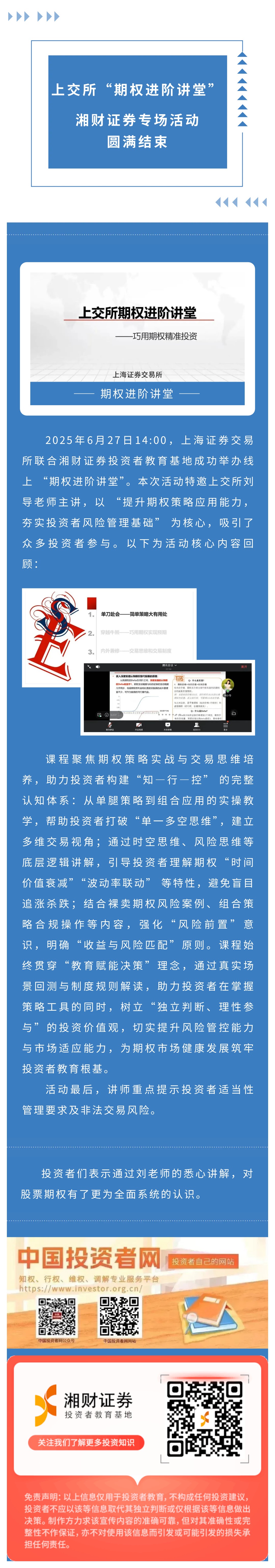 【投教活动】上交所“期权进阶讲堂”湘财证券专场活动,圆满结束