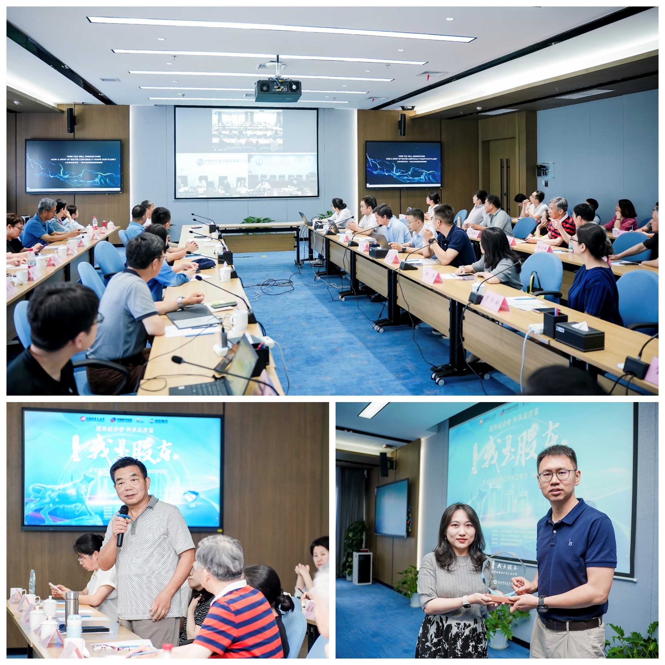 当日下午,长江电力与投资者通过“线上+线下”相结合的方式,联动武汉、北京、宜昌三地开展座谈交流。在座谈会上,华泰柏瑞基金指数投资部基金经理尤家妤首先从需求与发展角度,分享了电力板块投资思路;中国银河证券能源公用首席分析师陶贻功则围绕长江电力发展情况与业绩表现,向投资者作了详细介绍。在互动环节,长江电力董办、战略部、财务部、三峡梯调和销售公司等相关负责人,围绕公司业绩增长、新能源布局、分红政策等热点问题与投资者展开了充分交流。长江电力相关负责人表示,公司将通过深化流域水资源统一调度、拓展“水风光储”一体化项目、推进数字化升级三大路径,持续巩固全球水电行业引领者地位。活动最后,中国银河证券投资者教育与服务团队负责人杨华作为代表向上市公司赠送了“我是股东”活动纪念杯。