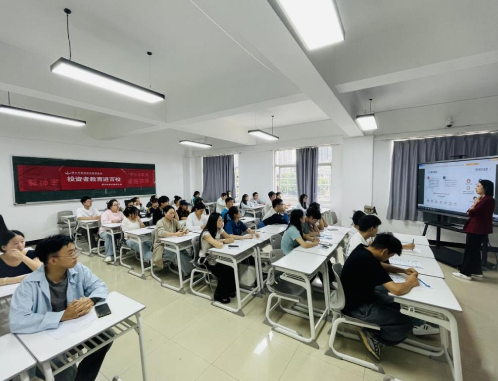 活动当日,国元证券投教基地专员以 “夯实金融基础,防范投资风险” 为核心,围绕 “认识证券市场”“常见投资产品解析”“金融诈骗防范” 等主题开展专题讲座。讲座中,专员通过一个个真实的案例分析与详实的数据解读,深入浅出地讲解了股票、基金、债券等投资产品的特点与风险,让同学们清楚了解不同投资产品的运作模式和潜在风险。同时,对于非法集资、网络诈骗等金融陷阱的识别方法也进行了细致阐述,帮助学生构建起系统的金融知识框架。