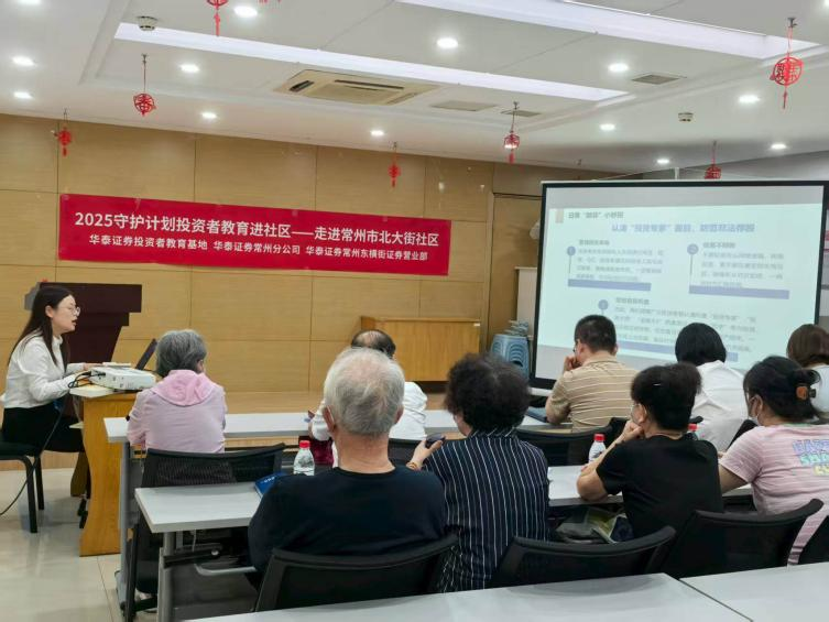 为推动投资者保护服务平等惠及中老年人,提高中老年投资者风险防范意识和自我保护能力,共同守护老百姓的“钱袋子”,华泰证券投教基地联合常州分公司及常州东横街证券营业部于7月8日开展防非教育宣传走进北大街社区专场活动,为社区居民带来了投保防非主题讲座。
