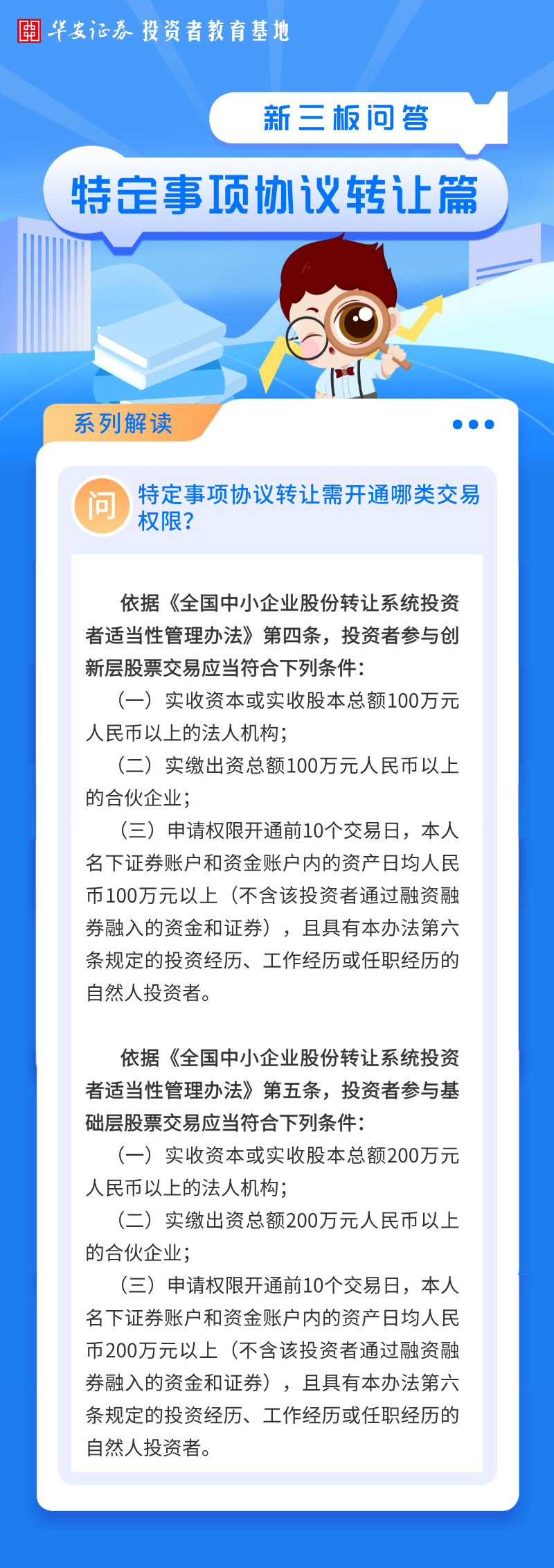 华小安惠学习 | 新三板特定事项协议转让篇知识问答:特定事项协议转让需开通哪类交易权限?