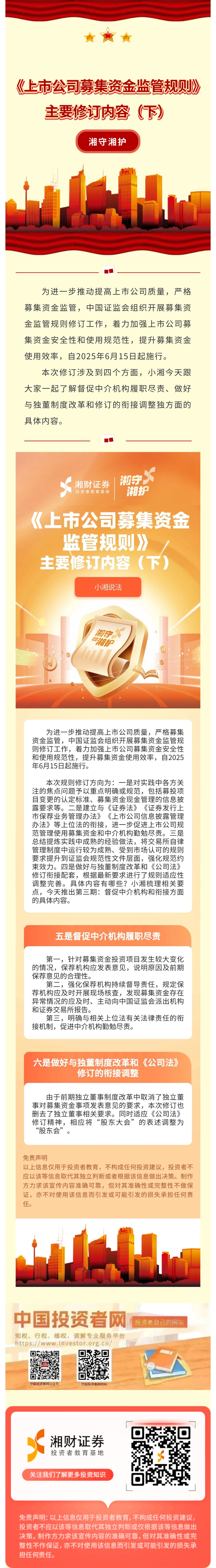 【湘守湘护 | 合规瞭望台】《上市公司募集资金监管规则》主要修订内容(下)