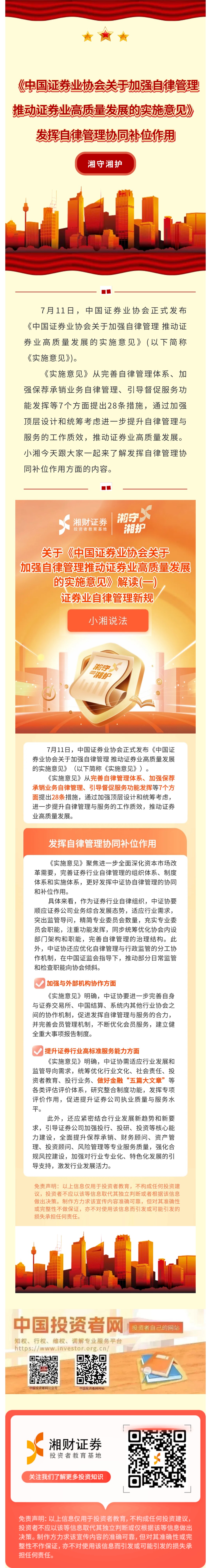 【湘守湘护 | 合规瞭望台】《中国证券业协会关于加强自律管理推动证券业高质量发展的实施意见》解读(一):发挥自律管理协同补位作用
