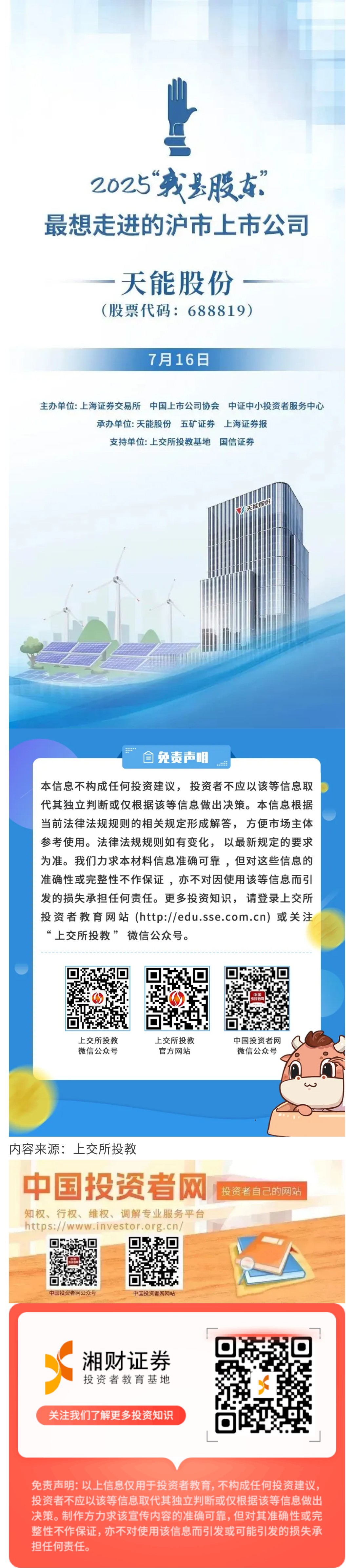 【上交所投教|我是股东】2025“我是股东”最想走进的沪市上市公司——天能股份