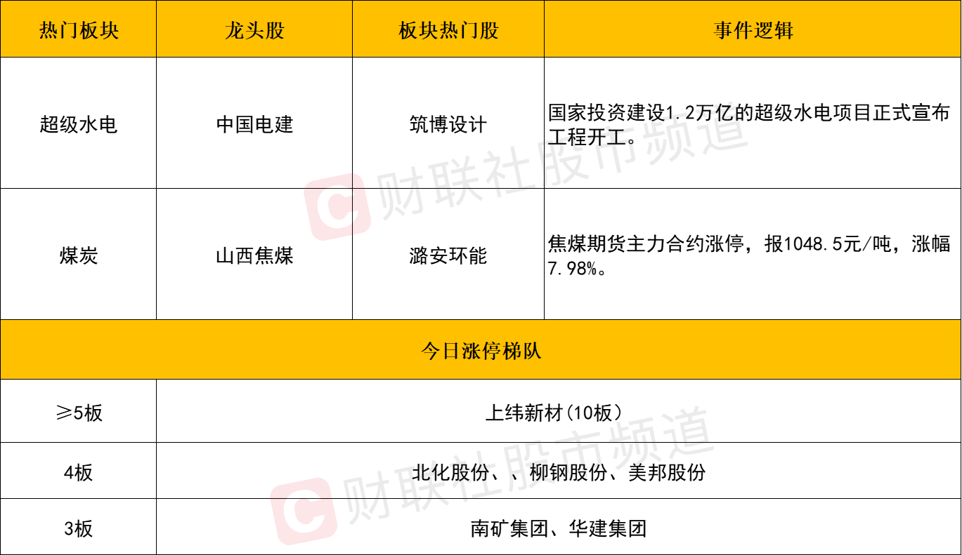 今日短线情绪持续高亢,连续两日超百股涨停,连板股数量更是达60余只 。从涨停分布来看,依旧紧紧围绕着超级水电这一核心题材所展开,工程机械、盾构机、水利、民爆、水泥等相关细分均涨幅居前。并且较之昨日呈进一步扩散态势,中国交建、柳工等个股也获得了资金的延伸炒作而涨停。显然目前该方向仍处于题材发酵期的无差别抢筹阶段。不过在连续两日放量拉升后,明日市场的承接动能或存疑虑,一旦增量资金不足的话,超级水电概念或将迎来一定的分化,届时那些产业真正受益并且能够带动业绩增量的细分或企业,便是后市聚焦的重点。