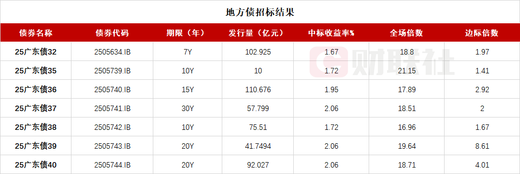 广东省政府七期地方债已招标结束 投标倍数均在16倍之上