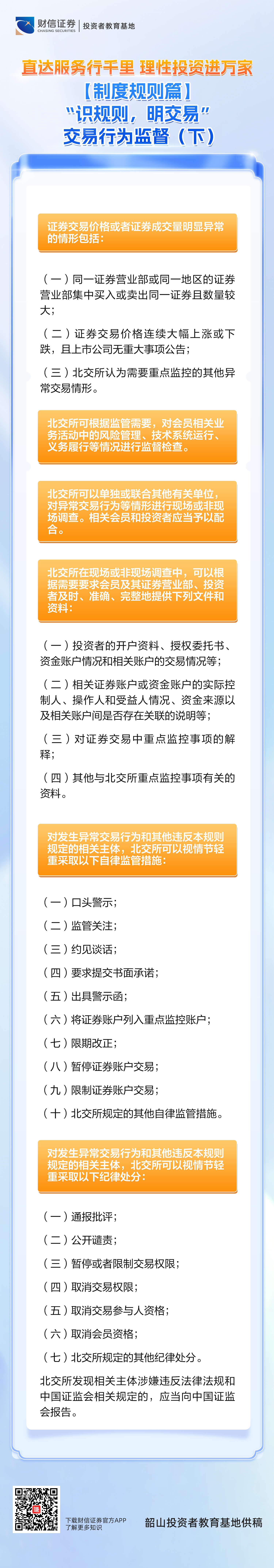 【免责声明:本栏目仅为投资者教育目的而发布,不构成任何投资建议。投资者不应以该等信息取代其独立判断或仅根据该等信息做出决策。财信证券投教基地力求所涉信息准确可靠,但对这些信息的准确性、完整性和及时性不作保证,亦不对因使用该等信息而引发的损失承担任何责任。】