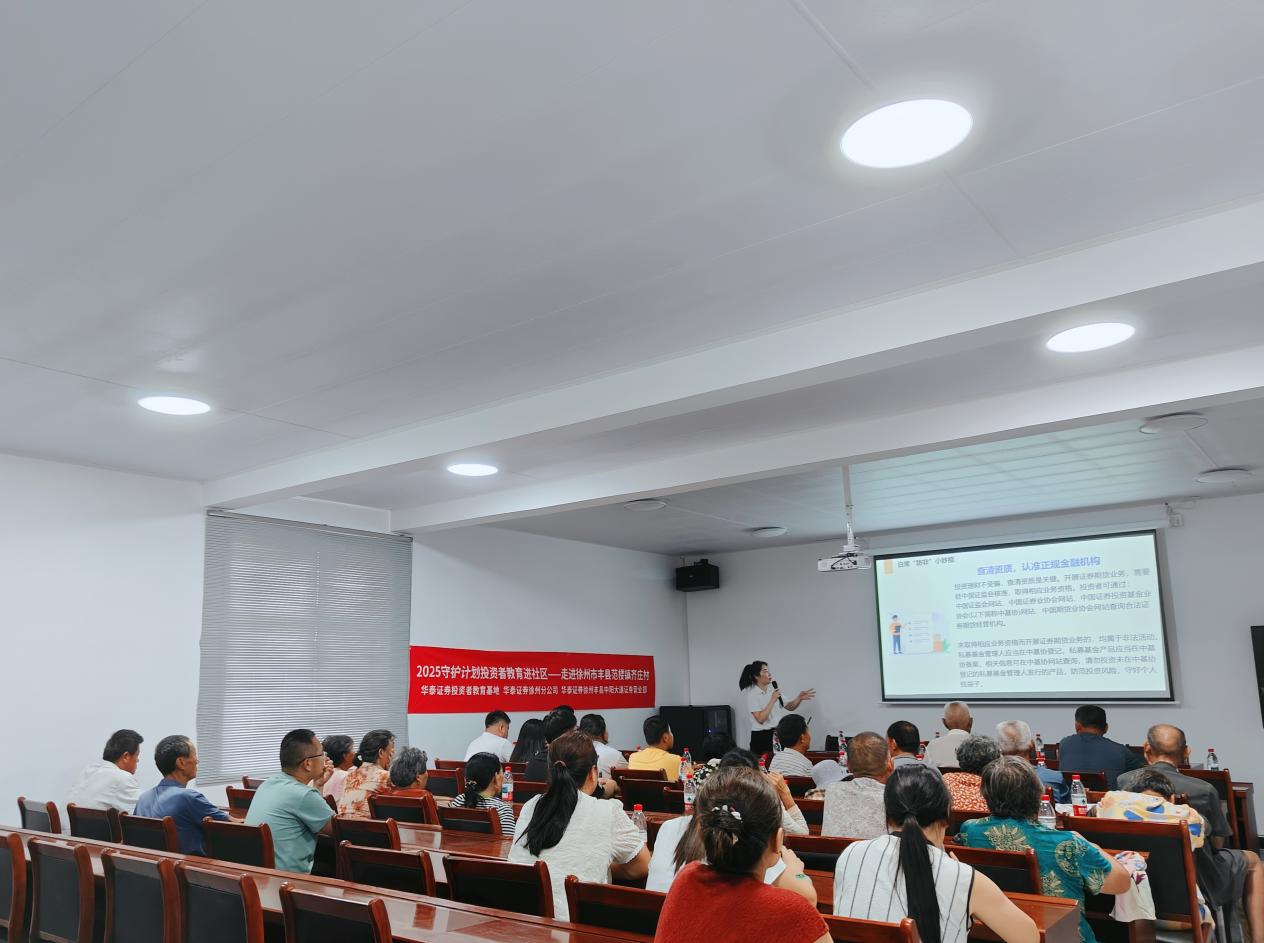 为推动投资者保护服务平等惠及中老年人,提高中老年投资者风险防范意识和自我保护能力,共同守护老百姓的“钱袋子”,华泰证券投教基地联合徐州分公司及徐州丰县中阳大道证券营业部于7月22日开展防非教育宣传走进齐庄村专场活动,为社区居民带来了投保防非主题讲座。