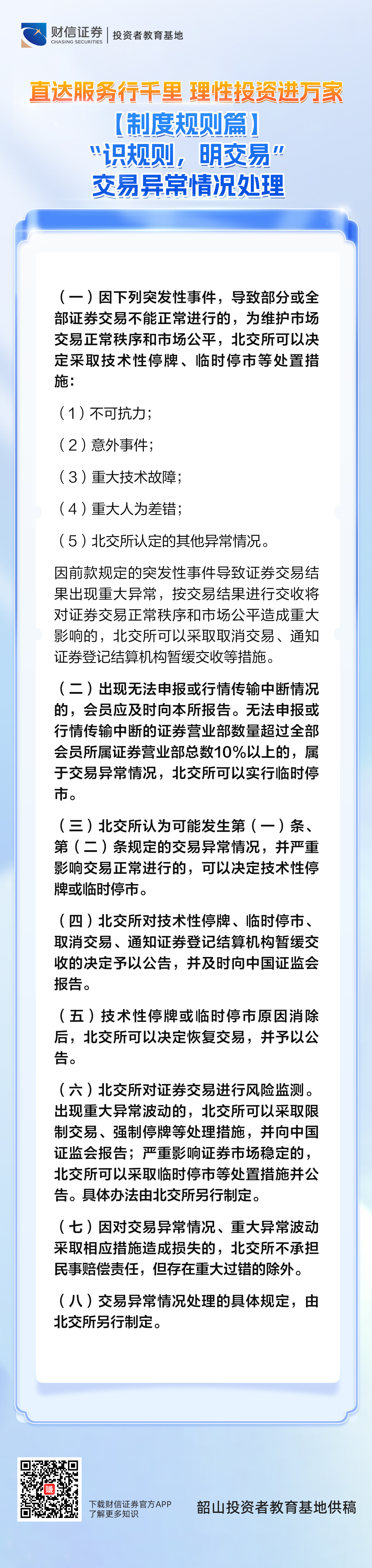 直达服务行千里 理性投资进万家丨【制度规则篇】“识规则,明交易” 交易异常情况处理