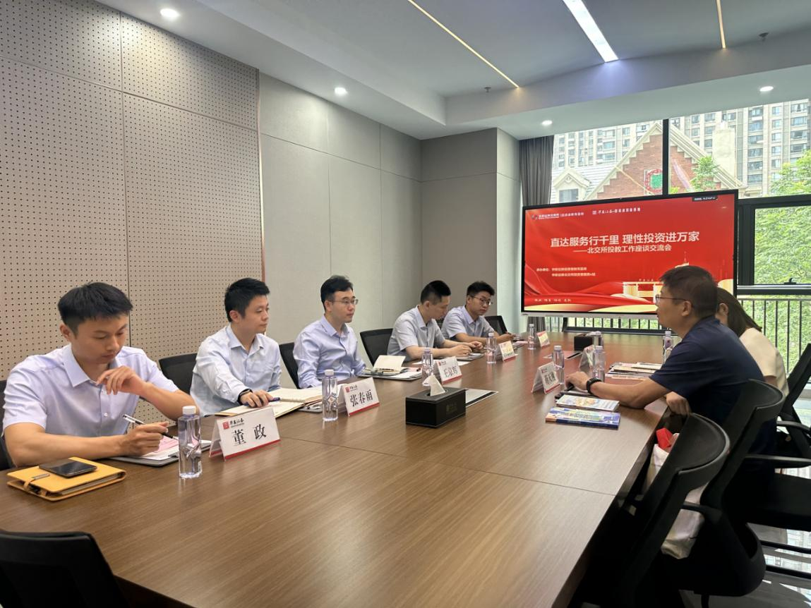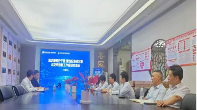 7月19日,北交所投教基地走进华安证券安庆宜城路营业部,与分公司及营业部投教工作骨干进行了专题座谈。会谈聚焦探讨新形势下如何优化投资者服务与教育工作的策略、方法及资源协同,并就当前北交所投资者教育中面临的重点工作,以及针对投资者需求分层分类开展北交所投教投服工作的优秀做法进行了交流,为一线投教服务提质增效提供新思路、新方法。