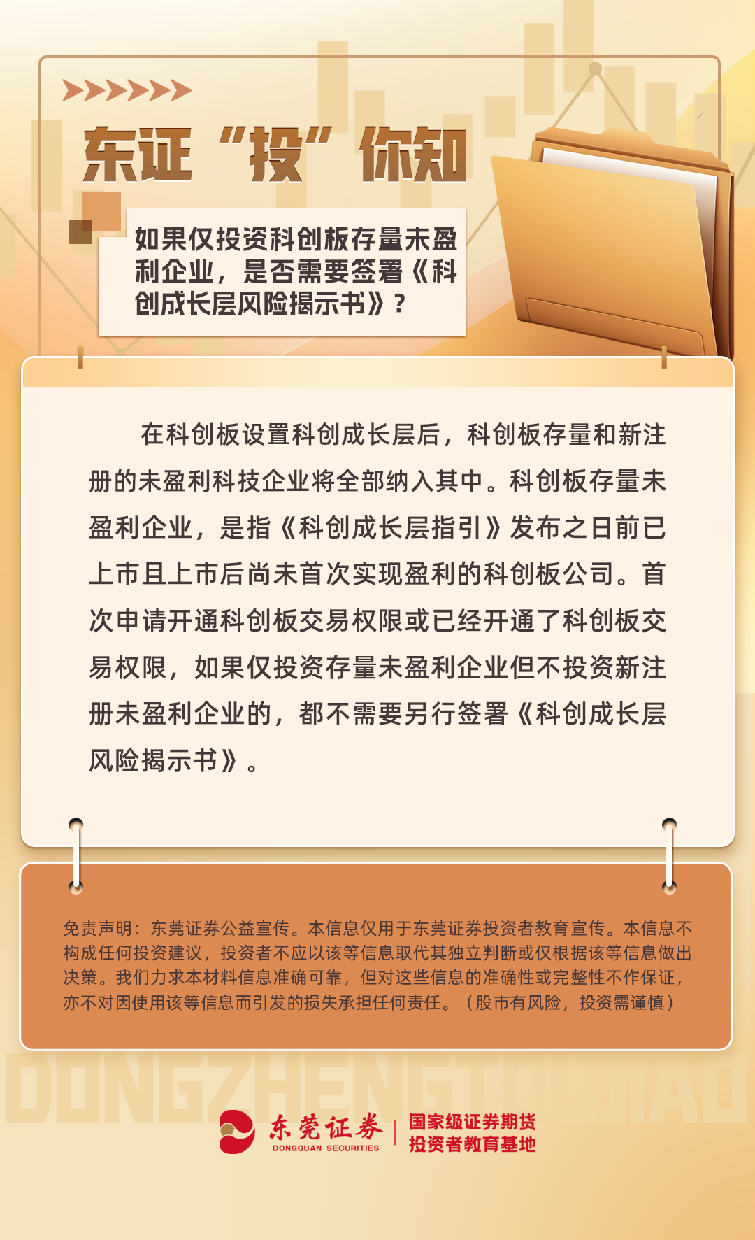 东证“投”你知|如果仅投资科创板存量未盈利企业,是否需要签署《科创成长层风险揭示书》?