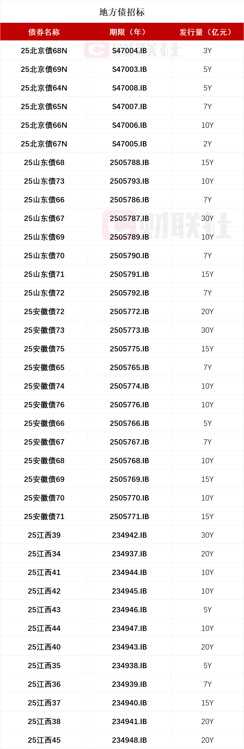 今日将发行四批次地方债 包括北京、山东、安徽、江西