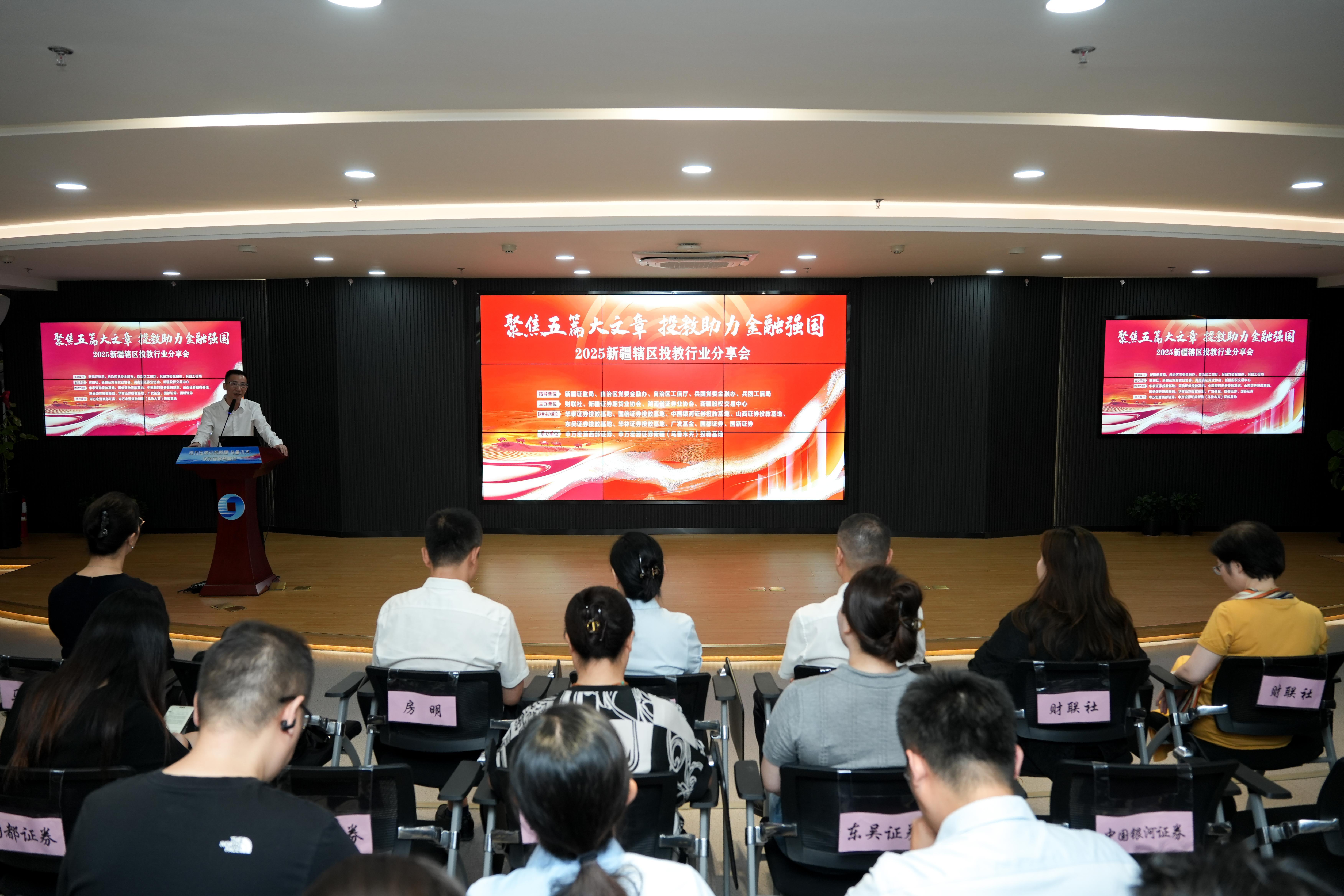 为促进投教从业人员更好地互学互鉴、集思广益,“2025新疆辖区投教行业分享会”于7月16日成功举办,湖南省证券业协会、新疆证券期货业协会、财联社、国都证券等单位的投教负责人及专家互通有无,分享了特色做法、成功案例,共享优质投教资源,共商投教工作遇到的挑战与对策,提出了建设性意见,形成了凝聚行业智慧的初步共识。本次分享会搭建了高效的交流合作平台,为提升行业投教工作的整体专业水平和服务实体经济能力奠定了坚实基础。