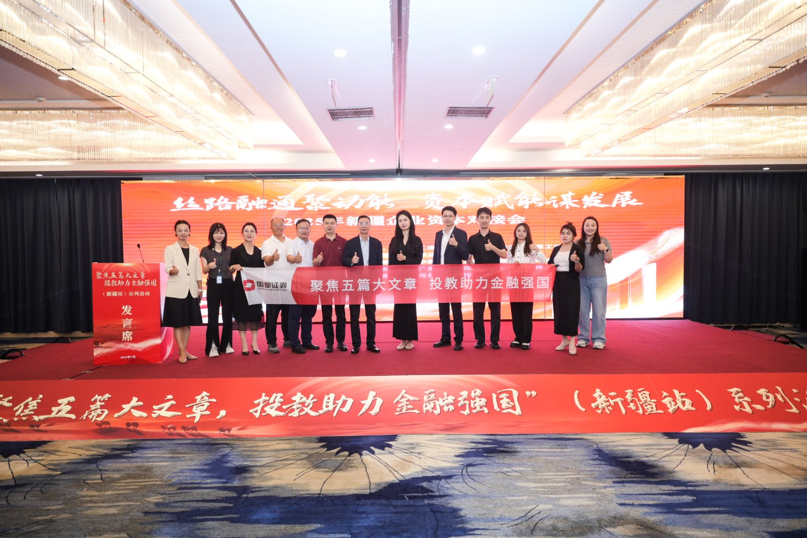 2025年7月中旬,在新疆证监局等单位指导下,国都证券联合财联社、新疆证券期货业协会等单位及多家券商共同举办“聚焦五篇大文章,投教助力金融强国”(新疆站)主题活动,开展党建学习、企业资本对接会、走进上市公司等7场活动,取得丰硕成果,受到当地企业、金融机构及投资者的认可与欢迎。