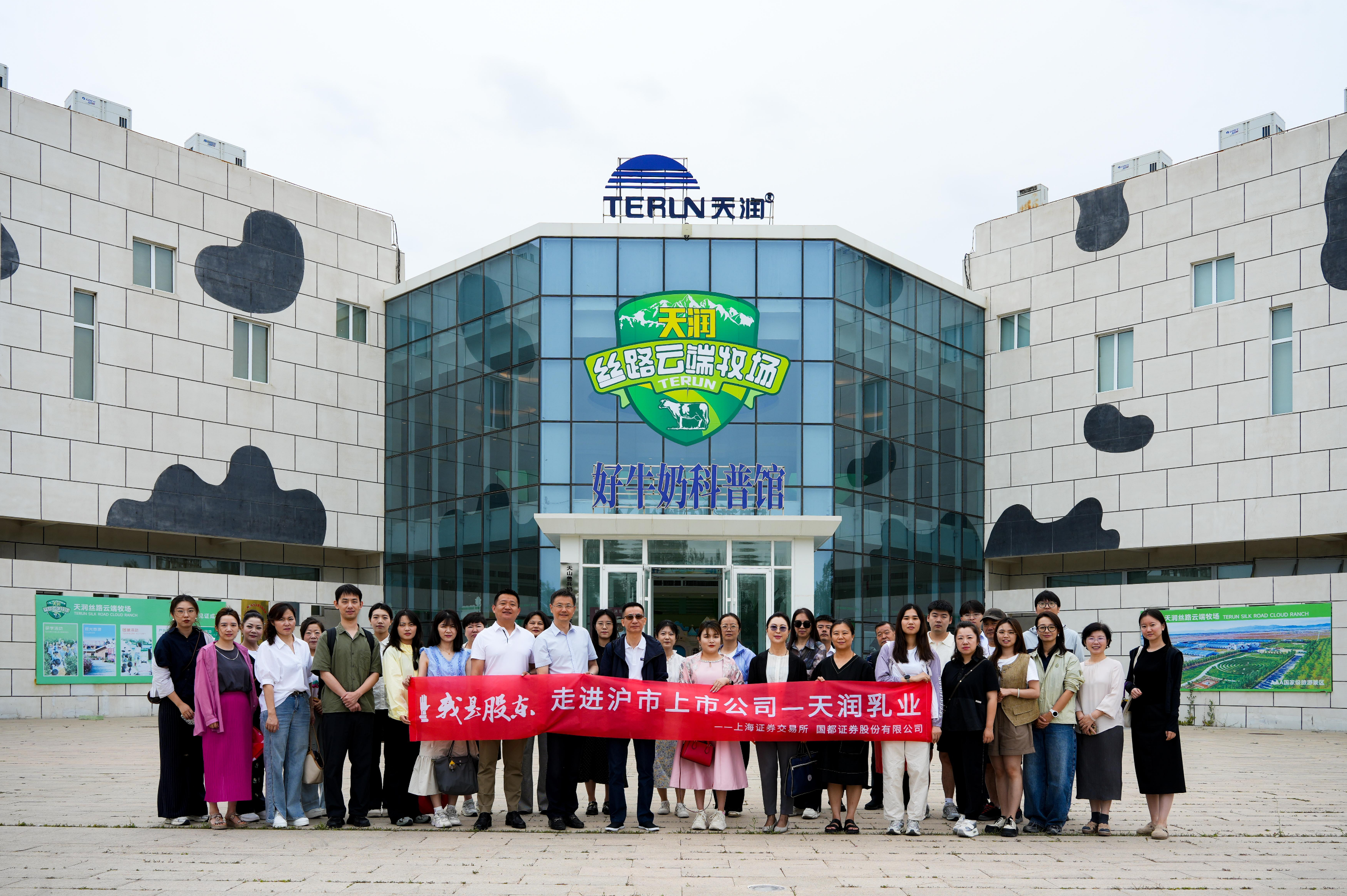 7月17日上午,国都证券及活动主办方与新疆上市公司协会一行带领投资者及小朋友六十余人,走进天山脚下的天润丝路云端牧场,全方位了解天润乳业全产业链。