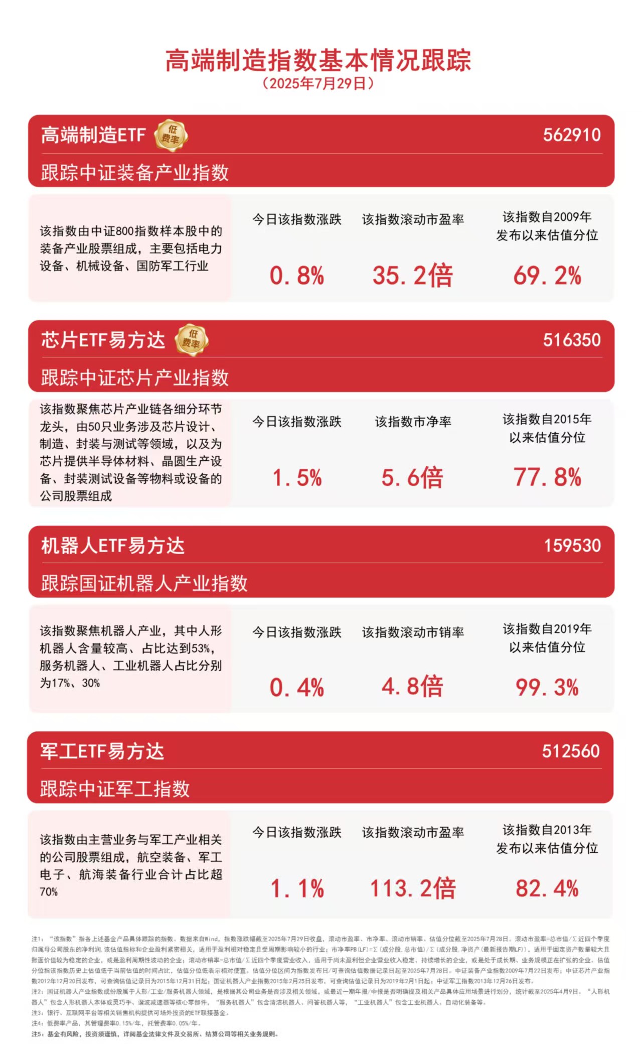 截至收盘,中证装备产业指数上涨0.8%,中证芯片产业指数上涨1.5%,国证机器人产业指数上涨0.4%,中证军工指数上涨1.1%。Wind数据显示,机器人ETF易方达(159530)今日获2000万份净申购,截至昨日,该产品已连续10个交易日获资金加仓,规模连创历史新高。