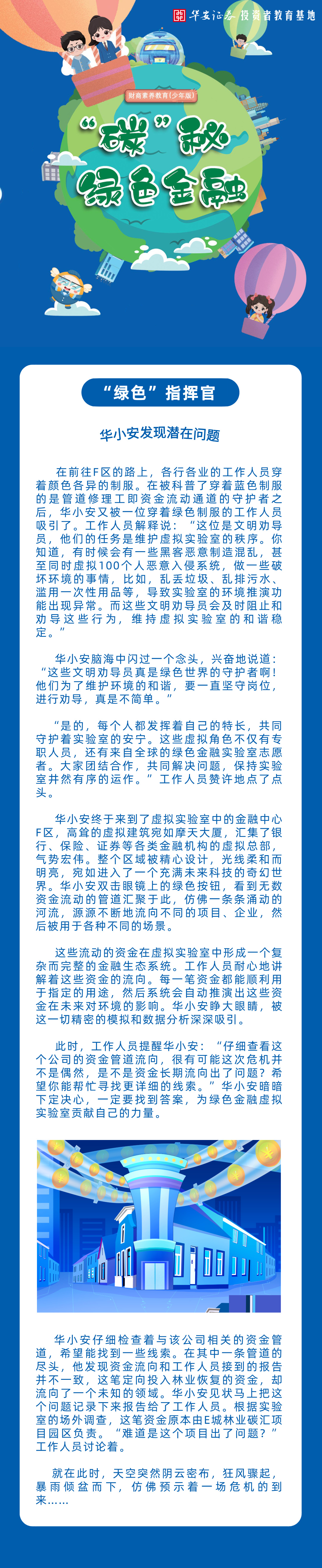 “碳”秘绿色金融 | “绿色”指挥官:华小安发现潜在问题