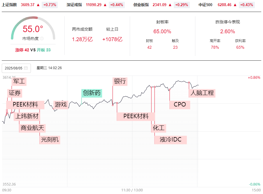 市场午后震荡走高,三大指数小幅上涨。成交量方面,午后第一个小时两市放量246亿。板块方面,午后算力硬件股持续走强。短线方面,情绪继续分化,昨日连板股跌多涨少,3只个涨停晋级,连板高度仍为4板。此外全市场涨停个股数量不足50只,创近期新低。
