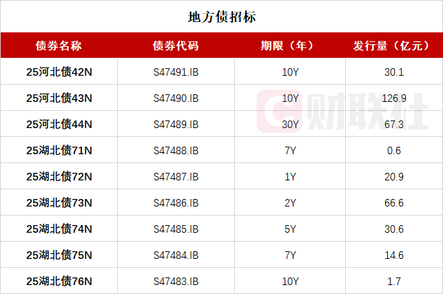 财联社8月8日电,今日将发行两批次地方债,包括河北、湖北,具体如下: