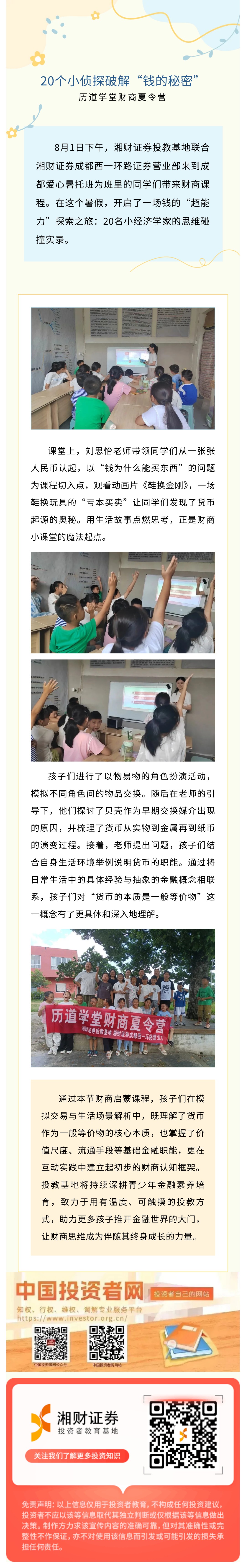 【历道学堂财商夏令营|分支风采】20个小侦探破解“钱的秘密”——湘财证券成都西一环路证券营业部走进成都龙泉驿暑托班