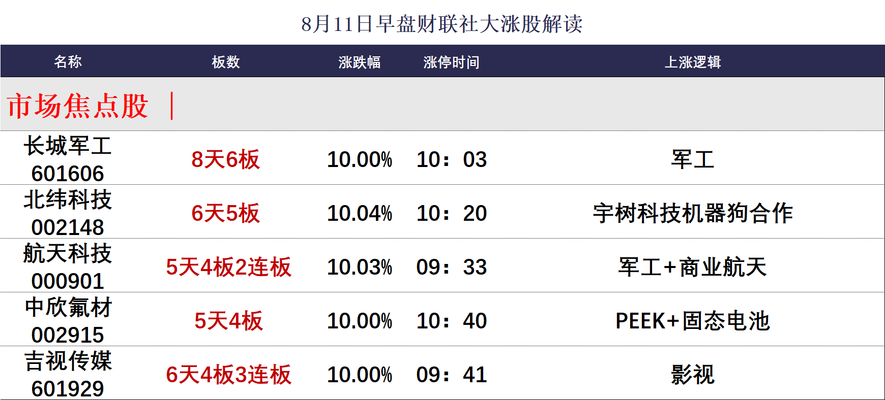 8月11日午间涨停分析